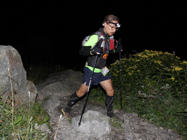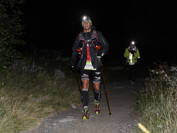 Die Streckenmarkierung muss unbedingt erwähnt werden. Ich höre ja oft, dass ein Landschaftsmarathon nicht leicht zu markieren ist. Hier ist ein Rundkurs von insgesamt 158 Kilometern markiert, meist durch hochalpines Gelände, das auch noch nachts begangen wird. Die Aufgabe wird bravourös gelöst. Insgesamt 5.000 Flatterbänder sind zusätzlich mit Reflektoren versehen und weisen den Weg. Durchschnittlich ist also alle 30 Meter eine Markierung. Je nach Beschaffenheit sind auch auf den Wegen mit Farbe noch Pfeile. Nicht ein einziges Mal kommen Zweifel auf, ganz zu schweigen davon, dass sich jemand verlaufen hat. Ich lasse keine Ausreden mehr gelten.