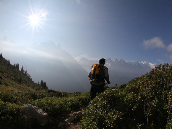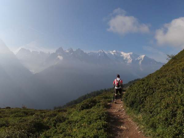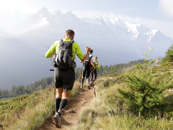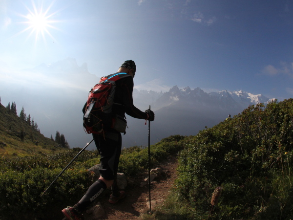 Schon auf der Fahrt mit der Bergbahn hoch zum La Flégerè sieht man die Läufer in weitläufigen Serpentinen die letzten Kilometer hinunter nach Chamonix laufen. Als ich aus der Bahn steige und nach kurzem Fußmarsch dem ersten Läufer begegne, der bis dahin über 160 km und fast 10.000 Höhenmeter in den Beinen hat, ihm applaudiere und ein aufrichtiges „Chapeau“ ausspreche, bekomme ich Gänsehaut und feuchte Augen. Es gibt Ausnahme-Athleten, die schaffen das in gerade einmal 20:34 Stunden (Xavier Thévenard), die beste Frau (Rory Bosio) braucht nur 2 Stunden länger. Unglaublich.