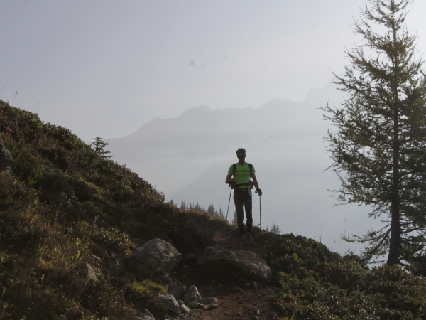 Am Tag davor, am Col Forclaz (ca. km 130), spricht mich eine Frau aus Deutschland an. Bunte Sportschuhe, farblich passend schickes Shirt und Shorts, leichter Rucksack, große Sonnenbrille – eine Touristin eben. Sie fragt, was hier los sei. Ich sage ihr, der UTMB geht hier vorbei. Und weil sie davon das erste Mal hört, will sie mehr wissen. Das Gespräch habe ich so in Erinnerung: