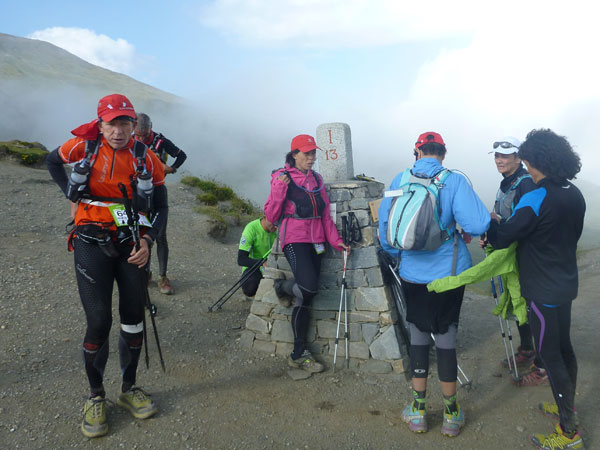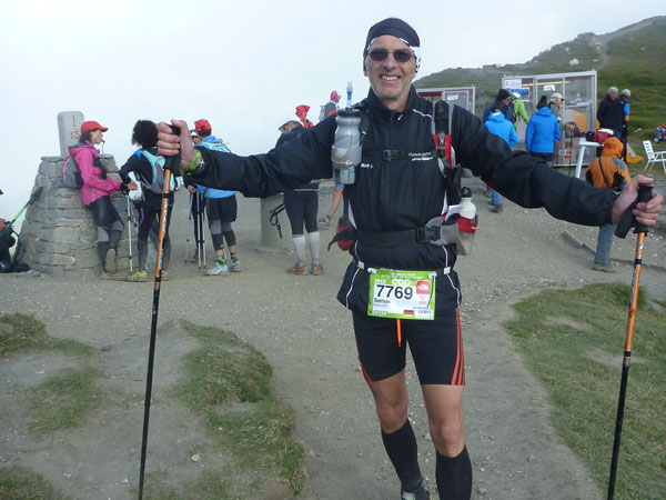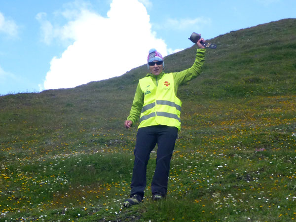 Nachdem meine Startnummer gescannt ist, muss ich mir dringend eine dünne Jacke und ein trockenes Stirnband überziehen. Am späten Nachmittag sind die Temperaturen auf der Höhe bereits wieder deutlich gesunken und es pfeift uns ein kalter Wind um die Ohren.