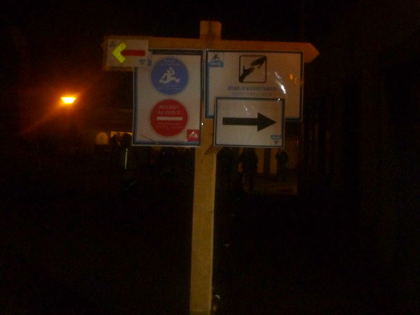 Kein Problem, mit frischem Saft in Lampe und Körper brauche ich niemand mehr, um meinen Weg weiter fortzusetzen. Es geht noch ein paar Höhenmeter weiter hinauf bis zum Colett Portallo (2.049 m), dem höchsten Punkt dieses Abschnittes. Ein Glockenkonzert erinnert mich daran, dass ich nicht alleine hier oben bin. Nach einem Viehgatter passiere ich die friedlichen Unruhestifter. Schwarze Rinder in tiefschwarzer Nacht. Auf der Lichtung hat man einen wunderbaren Ausblick auf das Lichtermeer von Champec-Lac weit unten im Tal. Ich komme alleine mit voller Beleuchtung schneller voran als ich gedachte hätte und kann beim Abstieg viele Läufer wieder überholen.