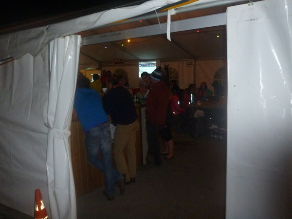 Das Zelt ist voll, ein DC sorgt für Stimmung. Jetzt macht mir das nichts aus. Fühle mich gut und habe Hunger wie ein Wolf. Der Käse und die Salami schmecken phantastisch, ich hau mir den Wanst voll. Dazu viel Kaffee und Cola. Ich benötige nur ein paar Minuten, dann bin ich wieder weg. Muss ich auch sein, die Zeit treibt mich voran. Ich will die Weste.