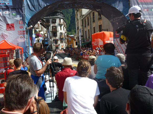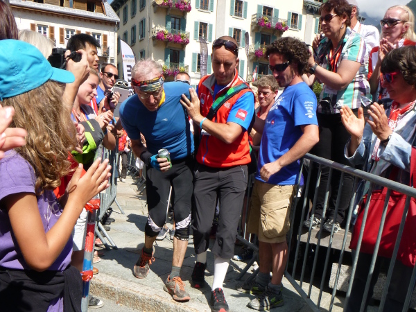 Die Strecke führt ab Centre Sportif, Gymnasium und den Messeständen durch die belebtesten Zonen von Chamonix. Es ist mein persönlicher Triumphzug, nach dem ich über viele, viele Kilometer nicht im Entferntesten daran gedacht habe, dies hier erleben zu können. Nicht aufzugeben lohnt sich immer. Die Straßen sind voll, viele Zuschauer haben sich bereits eingefunden, vielleicht auch weil in etwa 2,5 Stunden bereits der Sieger des UTMB erwartet wird. Der Zieleinlauf in die Gerade vor dem Place Triangle de l‘Amitié ist das Schönste, was ich bisher bei meinen Trail-Abenteuern erleben durfte. Davon habe ich geträumt und von der roten Finisherweste. Jetzt ist sie mein!