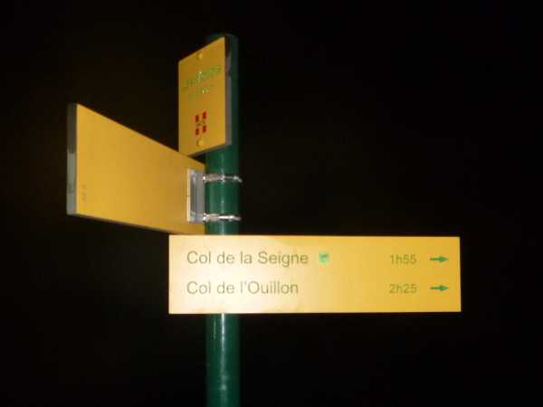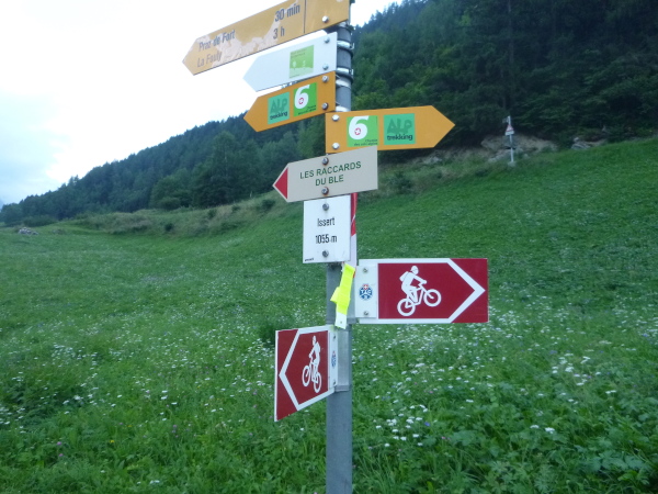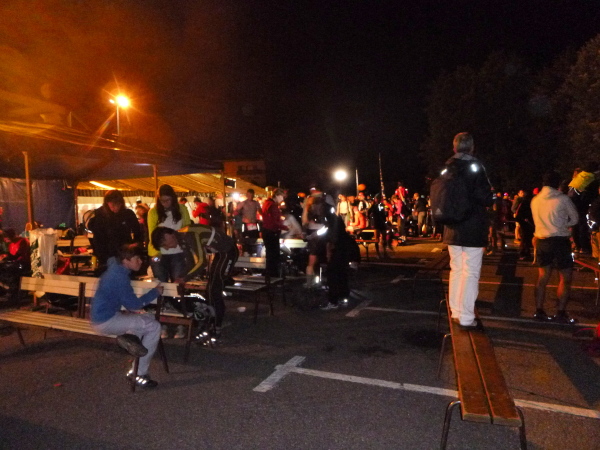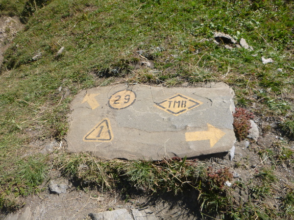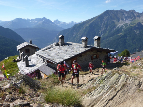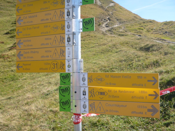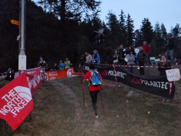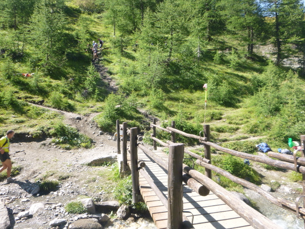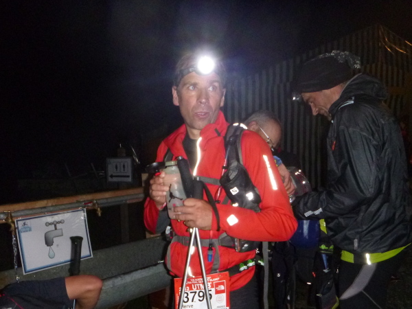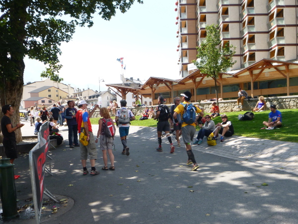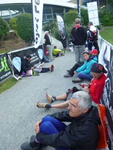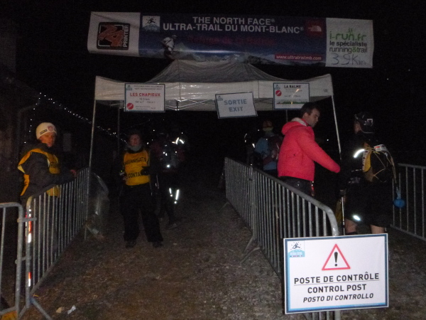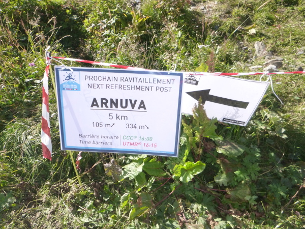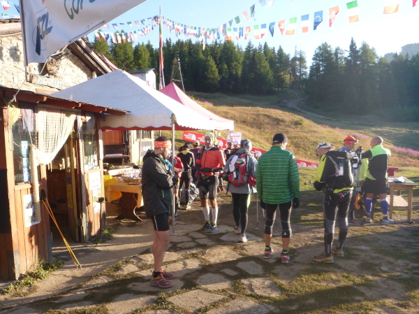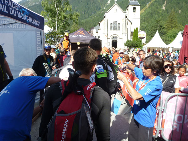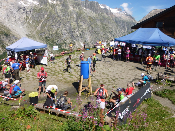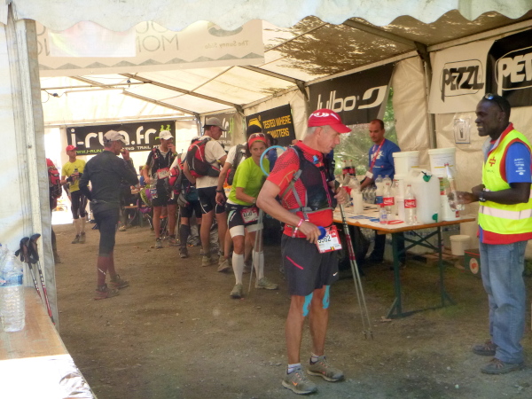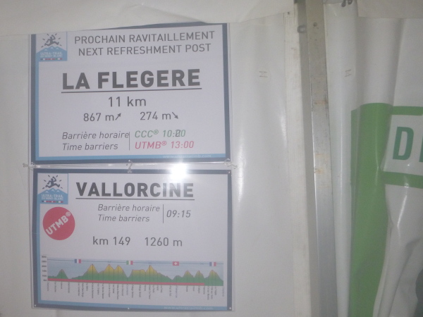 Um 9:15 Uhr stehe ich auf dem letzten der fünf Spitzen des CCC-Kurses. Auf dem steinigen Plateau ist bereits eine Menge los. Gleitschirmflieger nützen diesen Ort um von hier zu starten. Unsere Startnummern werden wieder gescannt. Mir passiert hier ein folgenschwerer Irrtum, ich habe mir die Karte nicht genau eingeprägt. Ein Franzose spricht von La Flégère. Damit hätte ich für die restlichen 8 km Abstieg noch gemütliche 2:45 Std. Zeit. Bei einem Gesamt-Zeitlimit von 26 Stunden. Easy going.