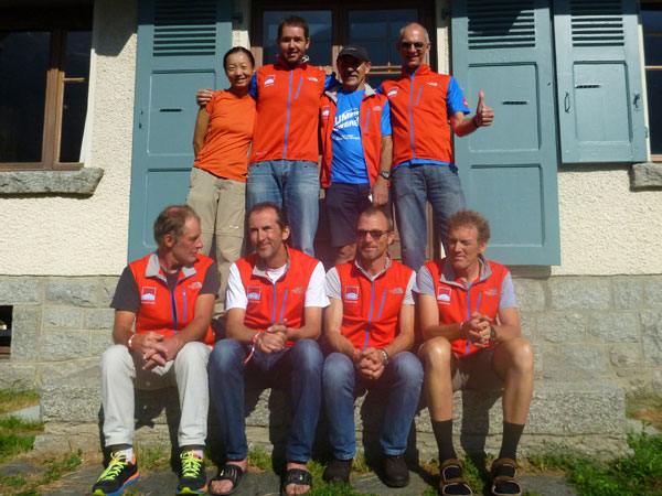 Währenddessen sind beim UTMB noch alle vier Starter des Deutschen Hauses im Rennen. Gebannt verfolgen wir im Tagesverlauf an unseren Laptops die Durchgangszeiten, die sofort live übermittelt werden. Axel ist der Schnellste des Hauses, schafft die 168,7 km noch ganz knapp unter sensationellen 30 Stunden, landet damit auf Gesamtplatz 115 und holt sich den 3. Platz in seiner Altersklassenwertung. 3,5 Stunden später kommt Gerald ins Ziel. Am Morgen treffen auch Tom und Marius wohlbehalten im Haus ein. Somit kann das Deutsche Haus, bis auf Bei, komplett in den tollen roten Westen zum Gruppenfoto antreten.