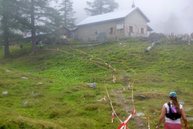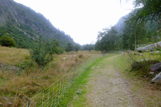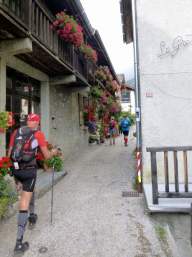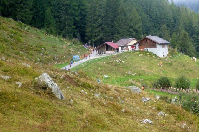 In Champex am See ist erste Zeitnahme, zu trinken gibt’s und am schönen See entlang geht es weiter. Bis Plan de`l Au kann man tatsächlich laufen. Erst der Aufstieg zum Bovine macht dem ein Ende. Steil und verblockt war das hier mal. Steil ist es immer noch, aber der Weg wurde deutlich entschärft, dennoch ist die Querung von Bächen riskant. Einmal dürfen wir sogar etwas bergab laufen. Trotzdem sind etwa 700 hm zu bewältigen. Oben an einer Stallanlage vorbei, dann noch etwas höher. An einem Gatter ist Schluss, dann zügig runter nach La Giete. Verblockt nochamal. Kruzifix. Ordentlich aufpassen, wo man hintritt. Fallen gibt’s genug.