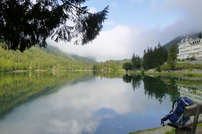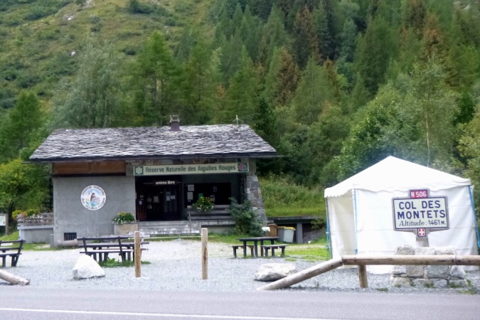 Tja, dann geht es im Ort Montroc unerwartet doch wieder aufwärts. Und danach auch noch. Schöne Strecke, aber nervtötend endlos. Und wenn man glaubt, man hats geschafft, kommt wieder eine Steigung. Dann aber die letzte. Steile Serpentinen, mit Blöcken dazwischen, dann Asphalt im Ort und ein herzliches Willkommen im Zelt. Wir haben uns gefunden. Wir – das sind die gemächlichen, immer dieselben. Mal überholt der eine, mal der andere. Wäre nur nicht das babylonische Sprachengewirr. An meinem Kantonesisch muss ich jedenfalls noch viel arbeiten, das Japanisch geht besser. Spanische Flüche kann ich jetzt auch, das rollende R gelingt mir aber noch nicht so eindrucksvoll. Reisen bildet halt.