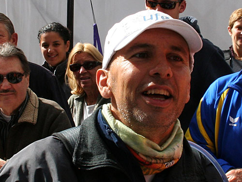 Sonntag früh, das Rennen ist noch lange nicht zu Ende. Am Eingang zur Fußgängerzone steht Shakal Ryan und schaut sich das Geschehen an. Er ist gegen 6.00 Uhr eingelaufen und hat jetzt bei allen vier Rennen gefinisht. Volker Fritsche, nach eigener Einschätzung ein Greenhorn (nur der K 78 steht bisher in seiner Ultra-Liste), hat nach erfolgreichem Finish längst geduscht und genießt jetzt die einmalige Atmosphäre.