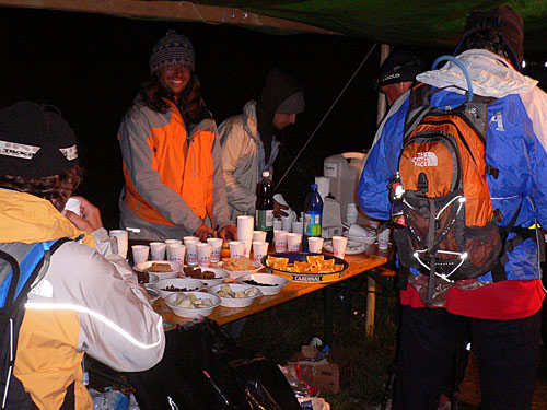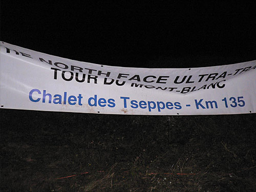 Optimistisch ziehen wir nach 20 Minuten Pause wieder los. Der Weg ist gut und auch nicht extrem steil, kein Vergleich zum Anstieg nach Bovine. Trotzdem bleiben wir hin und wieder stehen, atmen durch, trinken und gehen weiter. Ohne Probleme erreichen wir nach 70 Minuten das kleine Verpflegungszelt bei Les Tseppes (km 63, 1932 m). Kaffee wird zu meinem Lieblingsgetränk diese Nacht. Es ist nicht sehr gemütlich hier und überanstrengt haben wir uns auch nicht. Also machen wir uns nach 10 Minuten wieder auf den Weg.