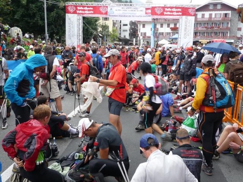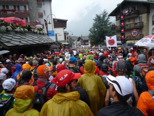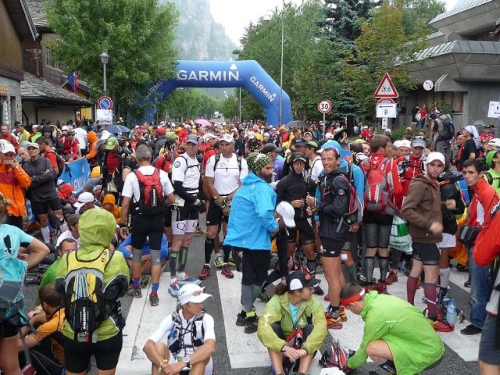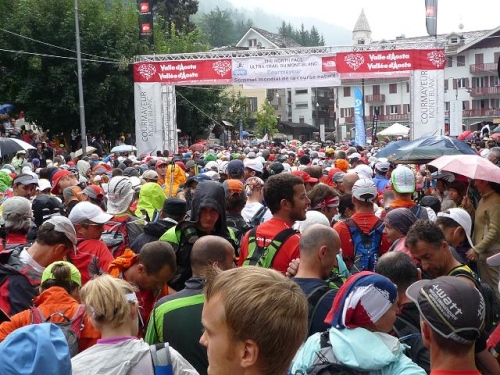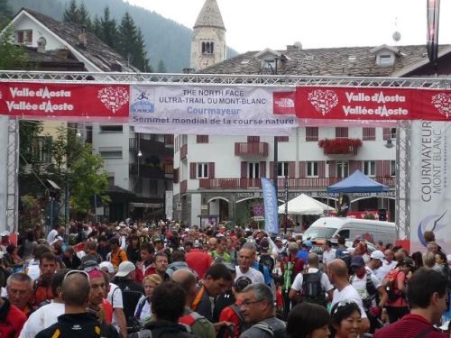 Eigentlich sollte unser Bus zu einem Sammelplatz im Ortsteil Dolonne fahren, doch findet der Fahrer das Ziel nicht und so werden wir am Busbahnhof entlassen, der zumindest nahe dem Startgelände liegt. Viel los ist allerdings um diese Zeit noch nicht. Erst allmählich trudeln immer mehr Läufer ein und verwandeln das Startgelände in einen Rummelplatz. Fasziniert beobachte ich, wie bunt und vielgestaltig meine Mitläufer „aufgebrezelt“ sind. Bisweilen kommt es mir eher vor, als stünde der Start einer Massenexpedition statt einer Laufveranstaltung bevor. Aber ich selbst bin auch bepackt wie noch nie bei einem Lauf. Aus 55 Ländern kommen die Läufer in diesem Jahr, wobei die Deutschen, was die Zahl der Starter anbetrifft, im Nationenranking gerade mal an sechster Stelle rangieren. Wie international das Renommee der Veranstaltung ist, belegt etwa die Tatsache, dass für den CCC fast so viele Japaner wie Deutsche gemeldet sind.