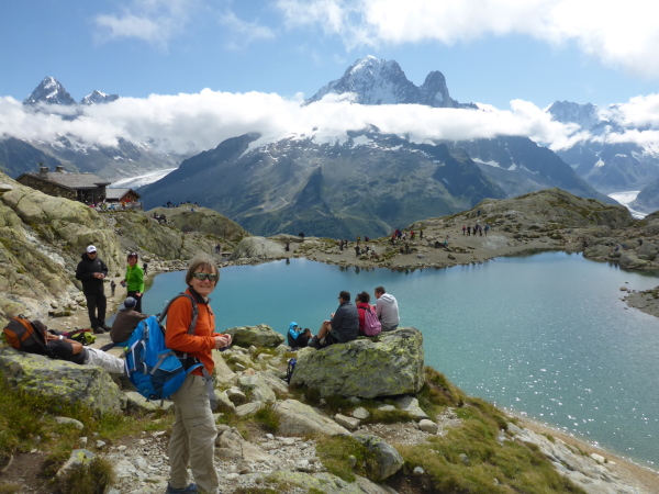 Meine Freundin und ich treffen schon einige Tage vor dem Start in Chamonix ein. Bei unseren Ausflügen begegnen wir sehr vielen anderen Trailrunnern.  Mit der Gondelbahn zu La Flegere (letzte Verpflegungsstelle auf der UTMB-Strecke), von dort zu Fuß hinauf zum Lac Blanc mit seinem tollen Panorama, dann auf dem Höhenweg zur Bergbahnstation Plan Praz mit tollem Mont-Blanc-Blick, ist eine der Touren, die ideal in die Vorbereitungswoche passen.  Genau so gilt dies für die Tour von Moroc auf den Aiguilettes des Possettes. Es lohnt sich, ein Mehrtagesticket für alle Bergbahnen zu kaufen.