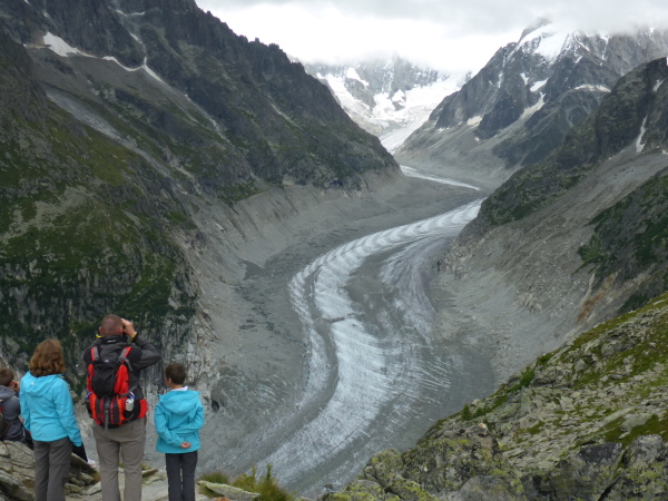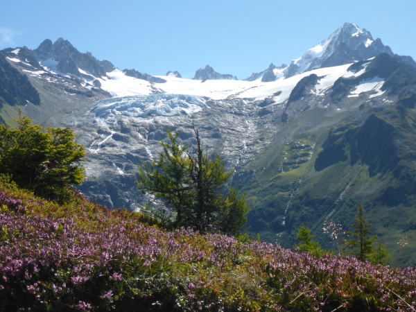 Gletscher faszinieren mich in den Alpen mehr als alles andere. Auf der UTMB-Strecke, die in weiten Teilen der Wanderroute Tour de Mont-Blanc entspricht, kann man bei gutem Wetter sehr viele Gletscher sehen. Daher wollte ich diese Fotoreportage ursprünglich unter das Motto „Gletscher-Sammeln“ stellen. Nun verbergen aber tiefe Wolken den größten Teil der Gletscherpracht.