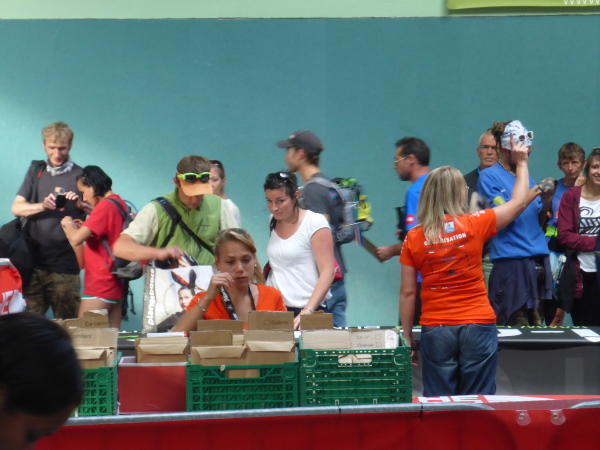 Nach einem trockenen Tag beginnt es 40 Minuten vor dem Start zu regnen. Im Startblock kommt Unruhe auf, denn im Gewühl packt jetzt fast jeder seine Regenjacke aus dem Rucksack und zieht sie schnell noch an.