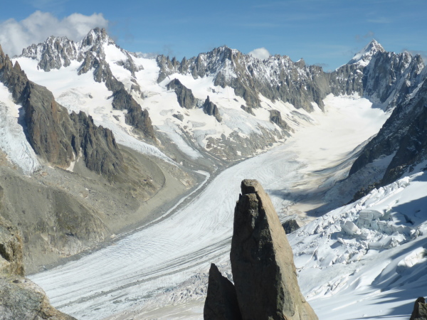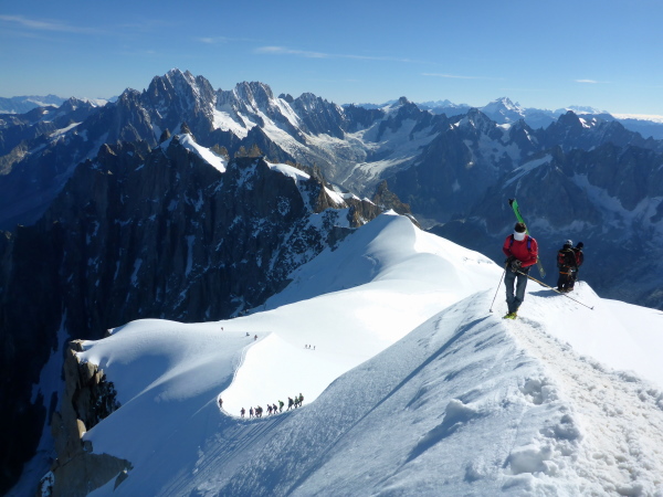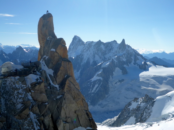 Besonders dünne Höhenluft schnappt man, wenn man mit den Gondelbahnen hinauf zur 3842 m hohen Aguille Midi und zur 3295 m hohen Grands Montets fährt. Beides sind außergewöhnlich faszinierende Aussichtspunkte auf eine großartige Gletscherwelt. Als ich auf den Aussichtsterrassen dieses riesige Gebirgsmassiv sehe und mir vorstelle, dass ich bald nonstop ganz außen herum laufen will, gruselt es mich. Neben einigen schönen Ausflügen fotografiere ich in dieser Woche auch den Start des 300 km langen PTL, der keine Laufveranstaltung sondern eine sehr anspruchsvolle alpine Herausforderung für sehr erfahrene Trailer ist und die nächtliche Ankunft des Siegers beim 119 km langen TDS.