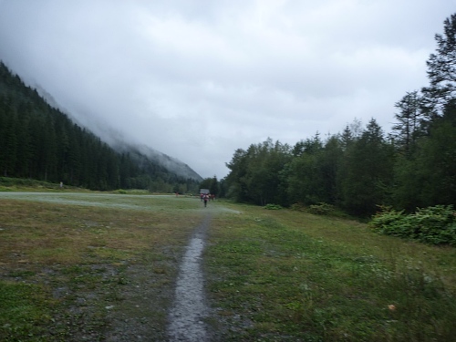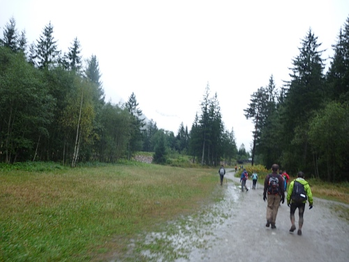 Aufstieg zum Col des Montets, nichts Besonderes, nur 3 Kilometerchen, allerdings eine Stunde. Es ist hell geworden. Ein Schrei von hinten verlangt Überholerlaubnis. Immer mehr blitzsaubere Läufer überholen mich. Ich bin stinkig auf diese Läufer, die sich anscheinend geduscht und mit frischen Klamotten versehen haben. Erst nach dem Zieleinlauf erfahre ich, dass das die Spitzenläufer des UTMB waren.