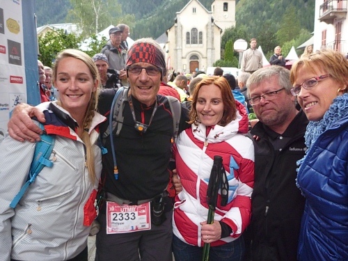 Von Vallorcine bis Charmonix (1035 m), km 96 und Ziel, sind es nur noch 15 Kilometer. Für mich sind es 3,5 Stunden, in denen ich die schreckliche Nacht noch mal in Ruhe passieren lasse. Ich habe Zeit, bin gut gelaufen, suche Gespräche mit jenen, die jetzt ihre Hunde zum Kacken ausführen. Mal sitze ich auf einer Bank, mal auf einem Felsen und quatsche mit den Leuten über meine Sturmzeit in Frankreich und die Ausscheidungen der kleinen Lieblinge. Diese morgendlichen Augenblicke geben mir viel. Ich mag das, Held bin ich jetzt sowieso, aber nicht am Limit. Und Freunde muss man sich erarbeiten.