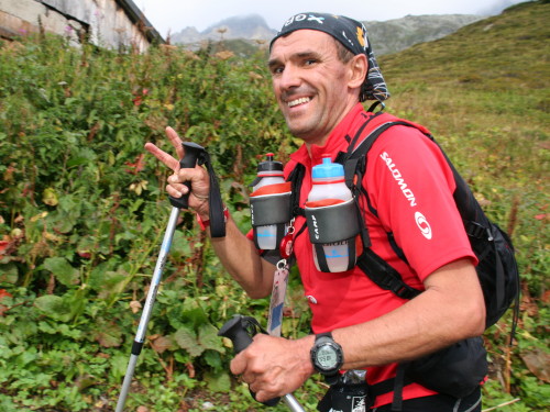 Endlich taucht aus dem Dunkel auch der zweifache Sieger Marco Olmo auf. Er liegt ziemlich zurück. Seine Stärke ist aber nicht unbedingt der relativ schnelle Lauf bis hier her. Sein Vorteil sind die Ausdauer und die Erfahrung. Aber heute ist nicht sein Tag. Obwohl er sich bis auf den 5. Platz vorarbeitet, kommt er diesmal nicht ins Ziel.