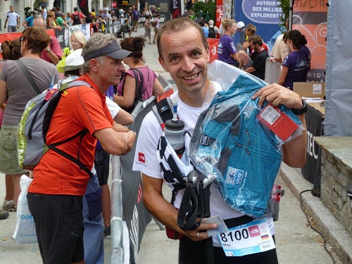Auf dem Weg zur Startnummernausgabe im Sportzentrum treffe ich Beat Lohner, den ersten Liechtensteiner Teilnehmer am UTMB. Bevor die Unterlagen ausgehändigt werden, wird der sorgfältig gepackte Rucksack auf die Vollständigkeit des Pflichtmaterials überprüft und gekennzeichnet. Über einzelne Punkte dieser Liste wurde im Forum der Website des UTMB lebhaft diskutiert. Fakt ist, dass der Veranstalter diese Vorgaben macht und damit Punkt. Oder wie es in den USA heißt: It’s the law! Ich habe großen Respekt vor den Bergen und habe lieber Sicherheitsreserven, als dass ich mich am Limit bewege, auch wenn das zusätzliches Gewicht am Rücken bedeutet. Dagegen hab ich vorgesorgt und mir noch die Fronttasche gekauft, welche zum Finishergeschenk des Zugspitz Ultratrails, dem Laufrucksack mit Trinkblase, kompatibel ist. Zugegeben, wenn über den Zeitraum der kommenden drei Tage eine Affenbullenhitze und keine Niederschläge zu erwarten wären, dann würde ich mindestens ein Ausrüstungsteil als überflüssig erachten. Dass bei einer Veranstaltung dieser Dimension nicht so individuell gehandelt werden kann, leuchtet mir ein. So flexibel handeln kann man bei einem der kleinen, feinen Trails, die sich dem Kenner anbieten. Der hier ist halt groß – aber fein soll er auch sein. Und noch vieles mehr. Ich bin gespannt.