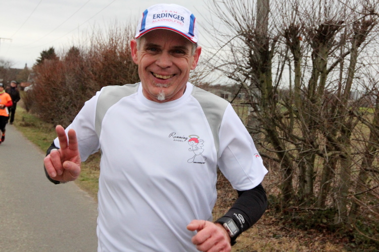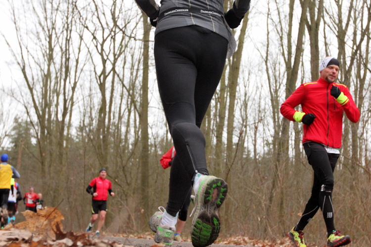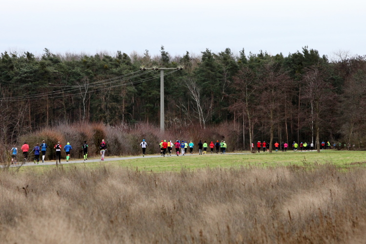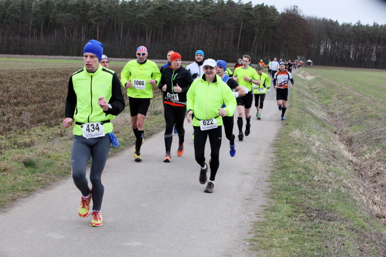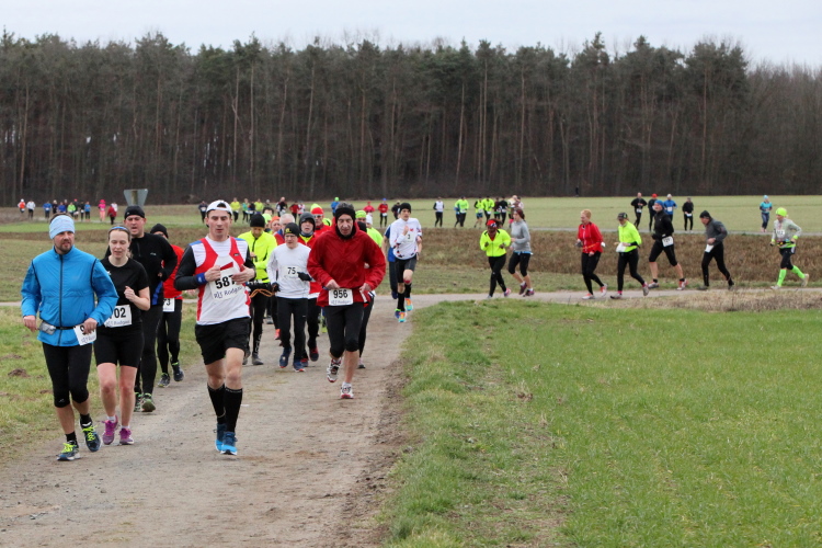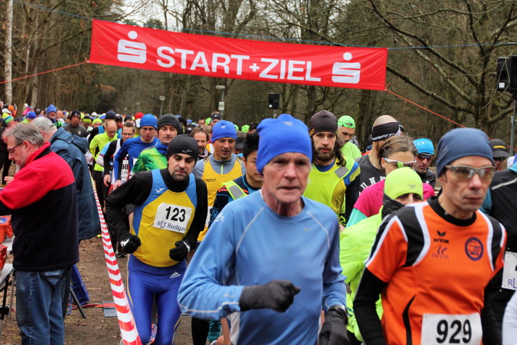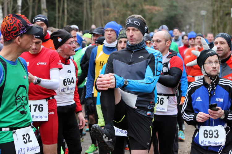 Zum wiederholten Mal werden wir aufgefordert, uns hinter dem Startbanner aufzustellen. Mir fällt es schwer, mich auf den Lauf einzustellen. Wir treffen nach der Winterpause so viele Bekannte, mit denen noch letzte Neuigkeiten ausgetauscht werden müssen, dass der Zweck unseres Hierseins in den Hintergrund tritt. Gerade als wir dann doch den Startbereich erreichen, geht es auch schon los.