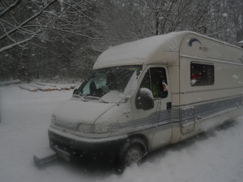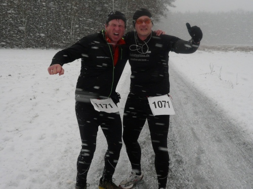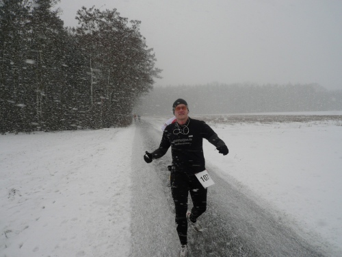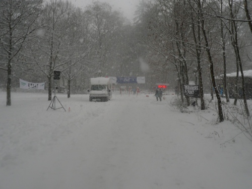 Als ich ins Ziel torkele erkenne ich , dass selbst Frau Wehrwolf in ihrem warmen Bus den Schneemassen kein Paroli bieten kann. Warum ist dieses Jahr nur so kalt?