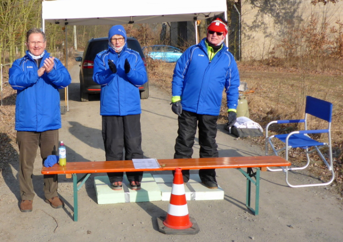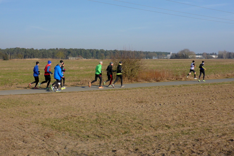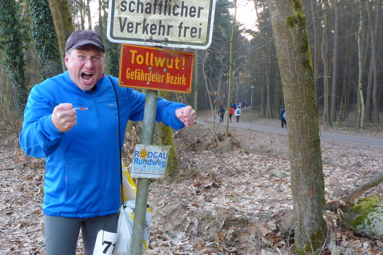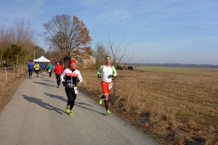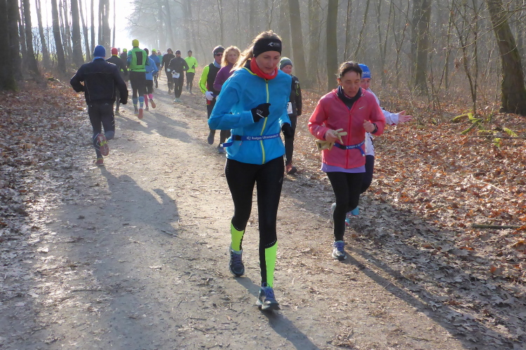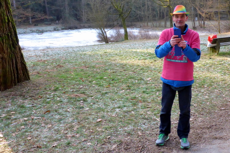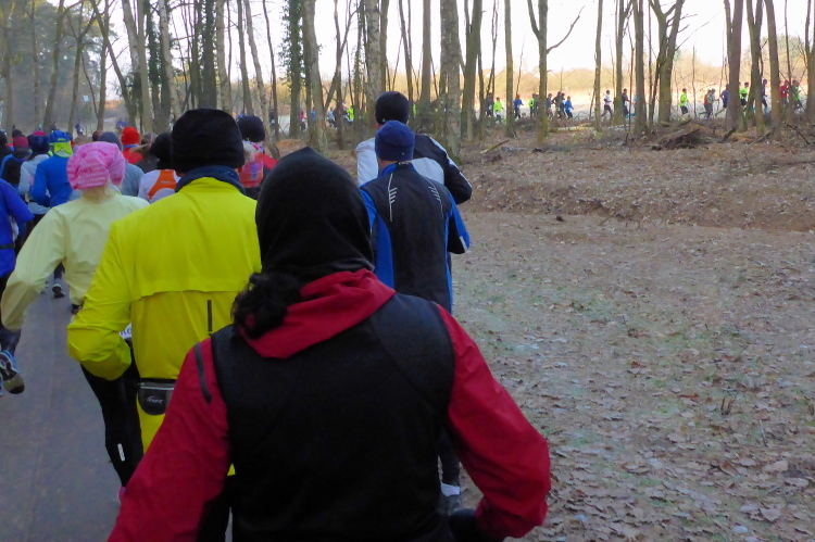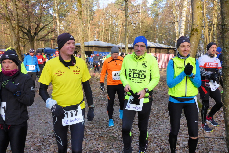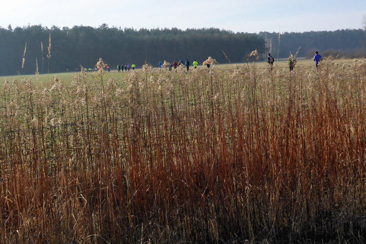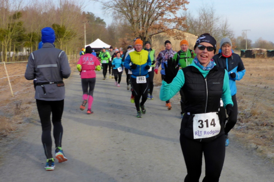 Die Gämsbrüh sieht zugefroren aus. Doch seit Wochen hat es keinen Niederschlag gegeben, was aussieht wie Eis, ist gefrorener Schmodder. Wir haben minus 6 Grad und einen grandiosen Sonnenlauf vor uns. 812 Starter fetzen los, es ist so trocken, dass eine mächtige Staubwolke über dem Läuferfeld hängt. 10 Meter hinter dem Start stehen Dixiklos, bei zwei Läuferinnen setzt augenblicklich der Pawlow´sche Effekt ein.