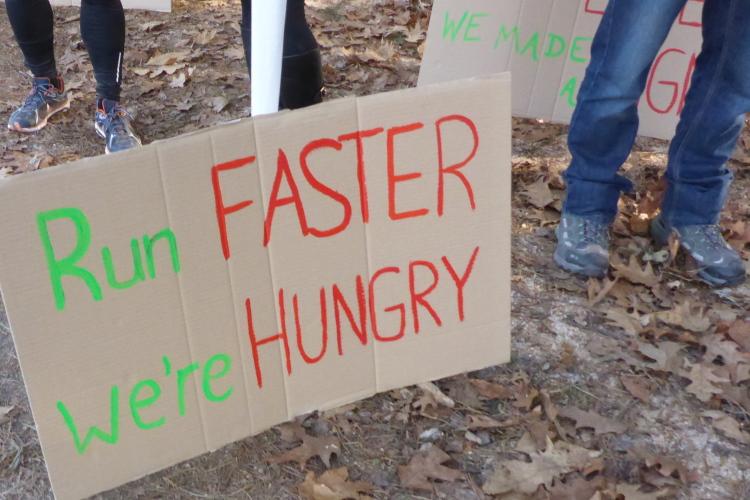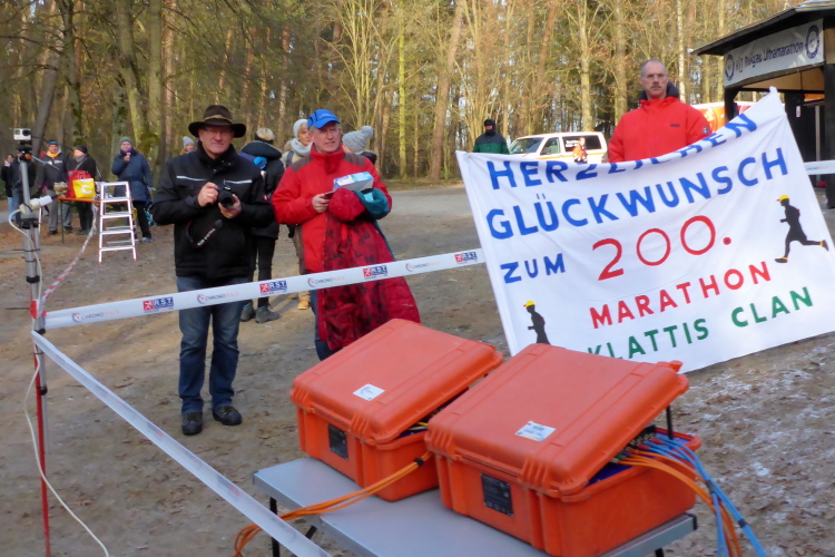 Die Gänse wurden alle sieben Wochen gerupft, die Federn waren in Dudenhofen sehr begehrt, denn ein Dudenhofener Vater wäre seine Tochter nie ohne Bettzeug als Mitgift losgeworden, die Winter waren schon immer kalt. Natürlich war auch das Fleisch begehrt, also, das der Gänse. Aber deswegen müssen wir uns nicht fühlen, als würde uns der RLT Rodgau wie eine Gans ausnehmen, nur weil das Startgeld auf 27 Euro erhöht wurde. Das Einsammeln des Startgelds von über 800 Läufern unmittelbar vor der Veranstaltung wurde zu aufwändig, also wickelt dieses Jahr die Firma raceresult die Zahlung ab, und das kostet auch. Raceresult wurde vom 16jährigen Sönke Petersen in Karlsruhe gegründet. 1999, damals noch unter dem Namen „Laufverwaltung“, bot er Software-Lösungen für Sportveranstaltungen an. Nun ist die Firma eine Aktiengesellschaft, Anteilseigner sind die Angestellten. Die Angestellten, die nun an der Gänsbrüh die Geräte für die Zeitmessung aufstellen, werden sicherlich bald Millionäre sein.