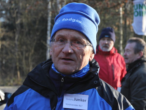Richtig nett ist es in der Halle und schön warm dazu. Draußen lacht zwar die Morgensonne, aber es ist (noch) bitterlich kalt. Und so lassen sich die meisten so lange wie möglich Zeit, zum Startpunkt aufzubrechen. Denn der ist nicht vor der Hallentür, sondern 850 Meter entfernt bei der Freizeitanlage “Gänsbrüh” inmitten des Waldes. Damit können wir uns wenigstens weitere Aufwärmübungen sparen.