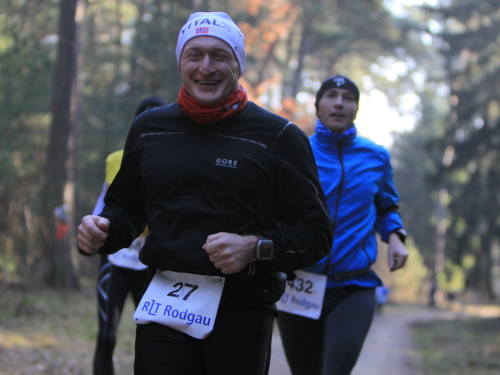 Da ich vom Angebot des Veranstalters, kostenlos in einer Turnhalle zu übernachten, keinen Gebrauch mache, bin ich am Lauftag schon sehr früh morgens auf der Autobahn A3 von München via Nürnberg und Würzburg in Richtung Frankfurt unterwegs. Von der Ausfahrt Rodgau unweit der Mainmetropole sind es noch 10 km bis Dudenhofen, einem der fünf Ortsteile Rodgaus, die erst 1977 im Rahmen einer Gebietsreform zu einer Großgemeinde zusammen gefasst wurden. Der Weg zur Sportanlage des TSV Dudenhofen, dem organisatorischen Mittelpunkt der Veranstaltung, ist ausgeschildert, Helfer weisen den anreisenden Autofahrern kurz vor dem Ziel den Weg und einen Parkplatz.