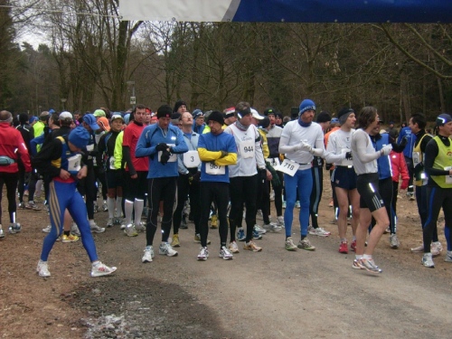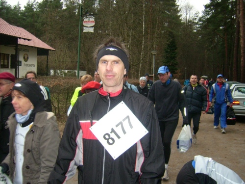 Der Wetterbericht liegt mit seiner Prognose nicht gerade richtig, denn es ist jetzt hochnebelartig bewölkt, der Wind pfeift über die Felder und temperaturmäßig sind wir irgendwo im Niemandsland um Null Grad. Ich schieße noch ein paar Bilder, höre schon die Ansprache, die Startkommandos und stehe noch außerhalb des Startblocks. Wenn ich noch mehr trödle und den Start verschlafe, dann gebe ich die Erlaubnis, mir mit einem Tritt die richtige Richtung zu geben.