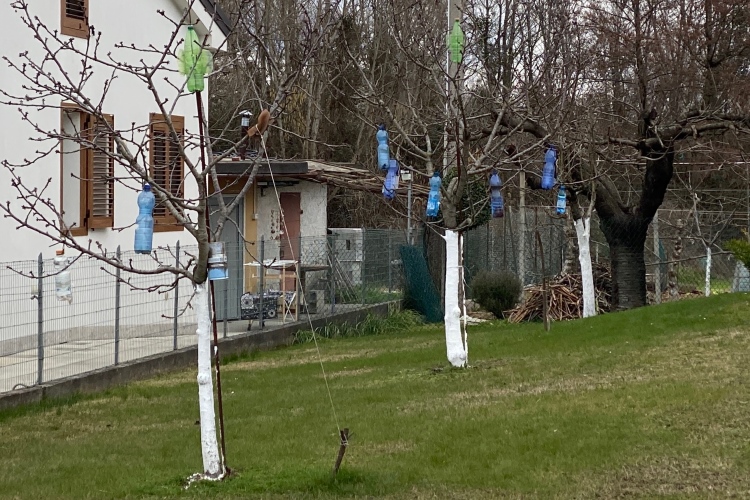 Also zurück, Richtung Palmanova. Ein Steinmäuerchen entpuppt sich als Rest eines antiken Aquädukts. In einem Vorgarten hängen Plastikflaschen an den Bäumen. Wir queren eine gut gesicherte Kreuzung in Terzo d‘Aquileia. Eine recht romantische Ecke hier, mit dem Fiume Terzo und einem Bambushain sowie exotisch anmutenden Kakadus in einer Voliere. Dann warten fast 8 Kilometer Umgehungsstraße auf uns.