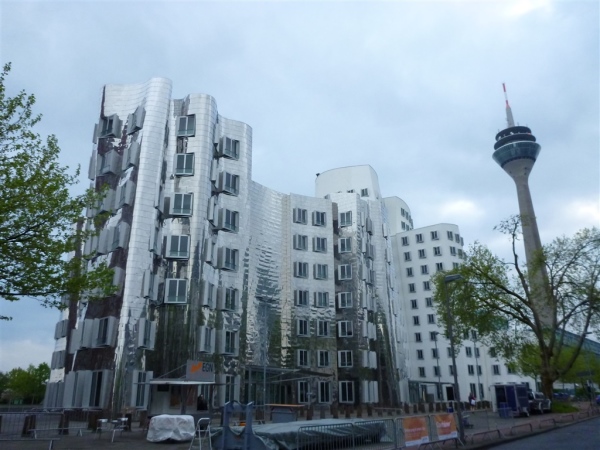 Start und Ziel liegen etwa anderthalb km auseinander und so gönne ich mir einen netten Spaziergang entlang der Gestade Vater Rheins. Passiere dabei den mit 240,5 m Höhe zehnthöchsten Fernsehturm Deutschlands, der zugleich das höchste Gebäude Düsseldorfs ist und das Landtagsgebäude. Dahinter beginnt der Rheinpark Bilk, an dem vorbei heute Mittag die finalen 500 m führen werden, die ich jetzt noch ganz ausgeruht entlangschlendern kann.