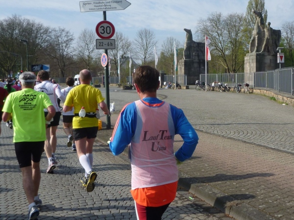 Der Favorit Paul Biwott hat seinen Flieger in Nairobi verpasst und ich hänge im linksrheinischen Trubel fest. Vielleicht schafft es Paul noch mit Blaulicht vom Flughafen zum Start, ich jedoch bin alleine im U-Bahn-Wagen auf dem Weg zum Victoriaplatz. Von dort ist es ein gefühlt ewig weiter Weg zu den Rheinterrassen.