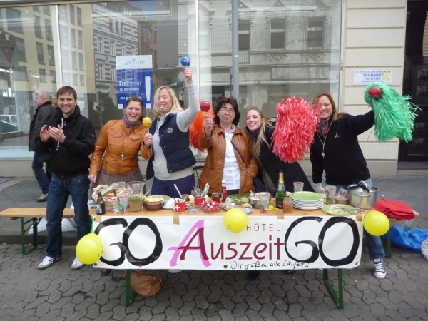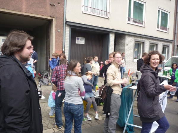 Später komme ich am Gegenteil vorbei, an einer Flower-Power-Krabbelgruppe. Sämtliche Kinder machen schon Mittags-Heia, weswegen die Eltern ohne ihre Überwachung nun richtig aufdrehen und diesen sonnigen Sporttag zusammen mit den Läufern genießen.