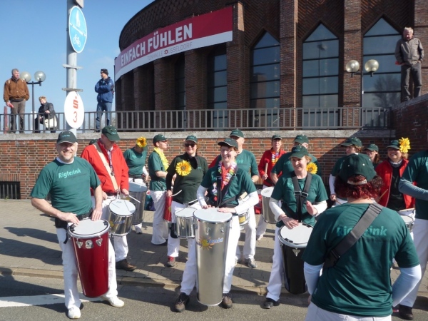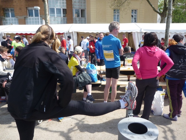 Ein anderer Bernd ist ein bisschen fülliger als sonst, konnte in diesem Jahr krankheitsbedingt noch gar nichts laufen. Hat noch nicht mal Training gemacht, weswegen wir uns auch gleich gut verstehen. Spontan hat er seine Startnummer bei ebay erstanden, 5 faire Euro kostet die Ummeldung, damit ist Düsseldorf gutes Vorbild.