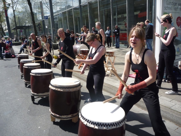 Auffallend sind die vielen japanischen Läufer. Mit über 6500 Japanern ist Düsseldorf die einzige Japantown Deutschlands. Seit über 100 Jahren schicken japanische Firmen ihre Mitarbeiter- meist kurzfristig- zu ihren Niederlassungen nach Düsseldorf. Junge Japanerinnen studieren an der Musikhochschule oder an der Kunstakademie, wo ich eventuell nächste Woche einen Modelljob kriege. Auf Ein-Euro Basis, mehr ist wohl nicht drin.