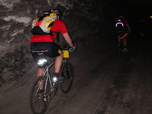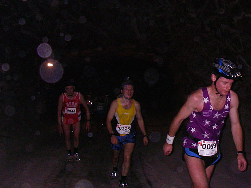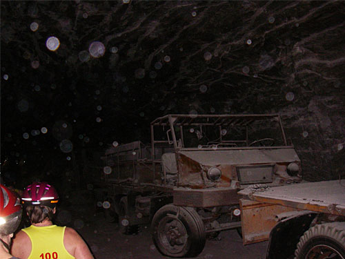 Nach der ersten Runde hatte sich das Teilnehmerfeld der 350 Läufer bereits so weit auseinander gezogen, dass man fast allein in den Gängen des Kali-Schachtes herumirrte. Da der Lauf über vier Runden führt, die je 320 Höhenmeter aufzuweisen hatten, konnte ich meinen Erschöpfungsgrad von Runde zu Runde immer besser feststellten. Die Luftverhältnisse sind zwischen dem zweiten Verpflegungspunkt bei Kilometer 5 und dem dritten Verpflegungspunkt bei Kilometer 7,5 am schlechtesten, da die Luftförderaggregate die Luft nur bedingt verbessern können. Es ist dort sehr warm und stickig. In den meisten Streckenabschnitten der Runde ist die Luftqualität aber ausreichend. Aufgrund der niedrigen Luftfeuchtigkeit von 30% hat man das Gefühl nicht zu schwitzen, das ist aber ein großer Irrtum, da die trockene Luft den Schweiß sofort aufnimmt. Da man seinen Flüssigkeitsverlust kaum bemerkt, ist es sehr wichtig, dass man an jedem Verpflegungspunkt zwei bis drei Becher Flüssigkeit zu sich nimmt, um Dehydrierungserscheinungen vorzubeugen. Fü alle Fälle patrouilliert ein medizinisches Team per Fahrrad um die Strecke.