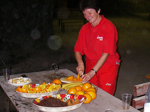 alle 2,5 Kilometer: Wasser, Tee, Cola, Bananen, Apfelsinen und getrocknete Früchte