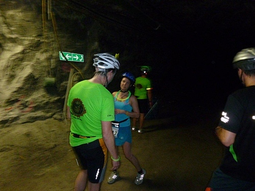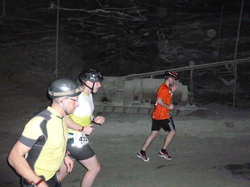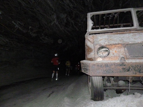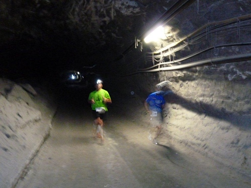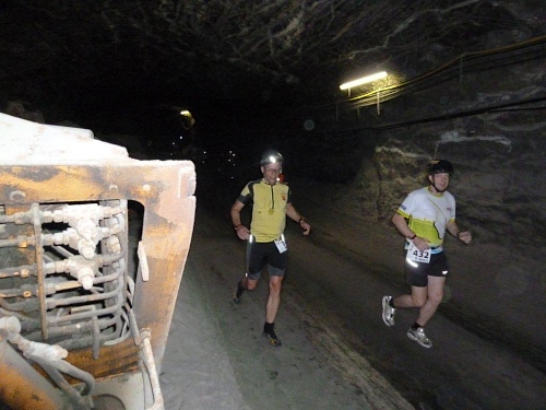 In der dritten Runde ist es so weit, dass ich ein Gefühl dafür bekomme, wie schnell die Schnellsten unterwegs sind. Ich mag ihnen ihre Kondition und den guten Trainingsstand gönnen, doch ich zweifle daran, dass sie die Details der Tiefe so intensiv wahrnehmen und diese auf sie wirken können. Zum Beispiel die ausgedienten, von Salzstaub bedeckten Grubenfahrzeuge. So zufällig ihre Anordnung und Ausrichtung auch sein mag, es ist der Anblick eines sorgfältig in Szene gesetzten Kunstwerks. Zufall oder nicht, dass ich mich beim Abschreiten dieser Galerie von Wracks plötzlich frage, wo mein Autoschlüssel ist? Ich kann mich nicht mit Sicherheit erinnern und vermute, dass er in der Tasche meiner Überziehhose im Zielbereich ist.
