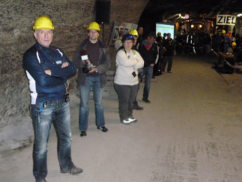 Gut, der hatte es insofern einfacher, als jener Höhlen-Steinbruch auf Kreta mit seinen ebenfalls kurvigen und in unregelmäßigen Winkeln aufeinanderstoßenden Gängen, welche vielerorts in Sackgassen enden, nur zweieinhalb Kilometer messen. Das ist doch immerhin ein Unterschied zu den 500km, die das ganze Geflecht hier einmal aufwies. Mittlerweile ist zwar über die Hälfte davon verfüllt, mit dem neu aufgenommenen Abbau von Steinsalz für den Winterdienst wächst die Ausdehnung aber wieder. Ersteres ist der Grund, weshalb die ursprüngliche Strecke mit vier Viertelmarathonrunden nicht mehr gelaufen werden wird, und die neue Abbautätigkeit macht eine Vorverschiebung des Marathons in den November notwendig, da die Arbeiten für den Rest des Winters nicht wegen eines Sportanlasses ruhen gelassen werden können. Die lange Runde habe ich verpasst, den Marathon am Tag der Heiligen Barbara habe ich letztes Jahr erlebt und dies wird der letzte sein, der sich mit dem Besuch eines Weihnachtsmarktes in Thüringen kombinieren lässt. Einmal mehr zeigt es sich, dass man die Gelegenheit beim Schopf packen muss. Wer zu spät kommt …