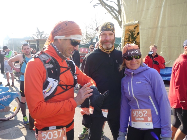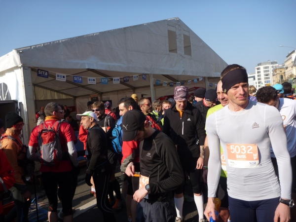 Pflichtausrüstung: 1 Liter Wasser, Essbares, Handy und Taschenlampe. Es wird schon mal dunkel unterwegs. Chip ist in der Startnummer. Verpflegungsstellen? Keine Ahnung. Der 56 km-Lauf findet zum zweiten Mal statt, jeder Ultraläufer muss autark sein. Ich hoffe auf Kioske und Ausflugslokale für isotonische Getränke. Ich werde bitterlich enttäuscht.