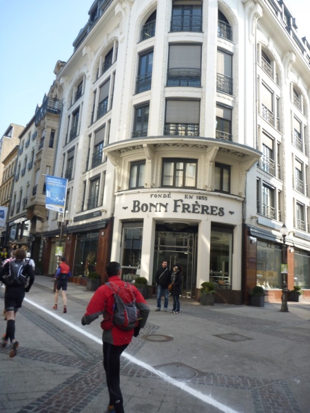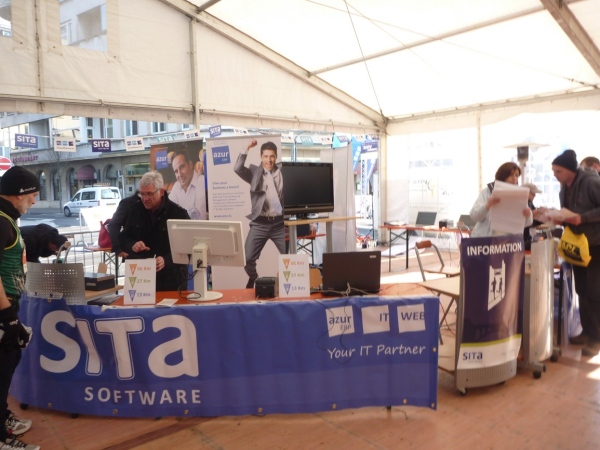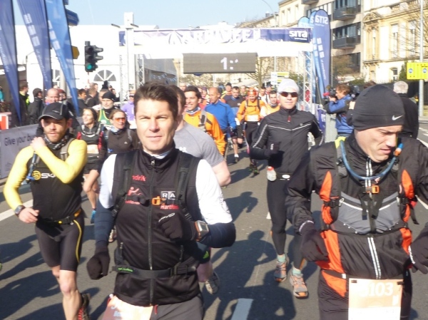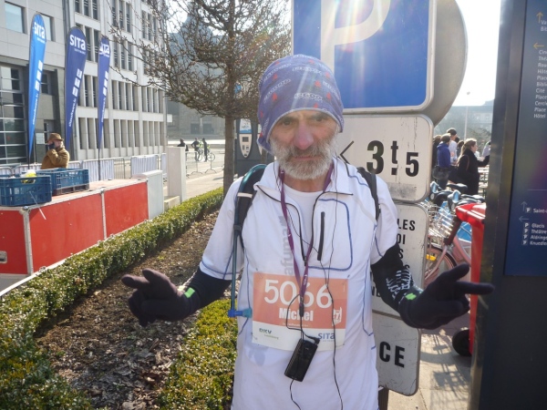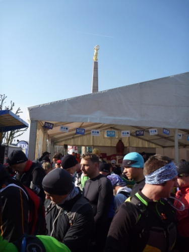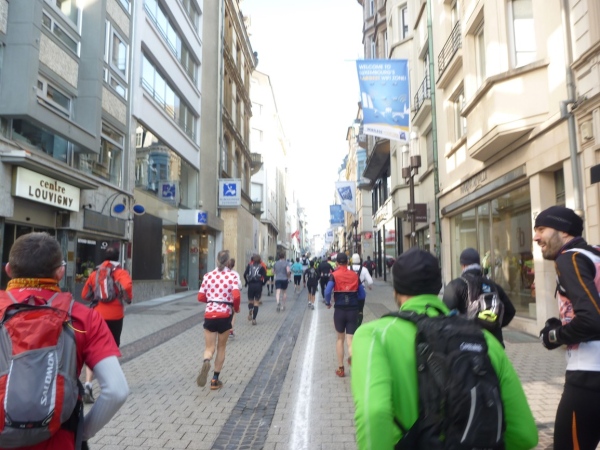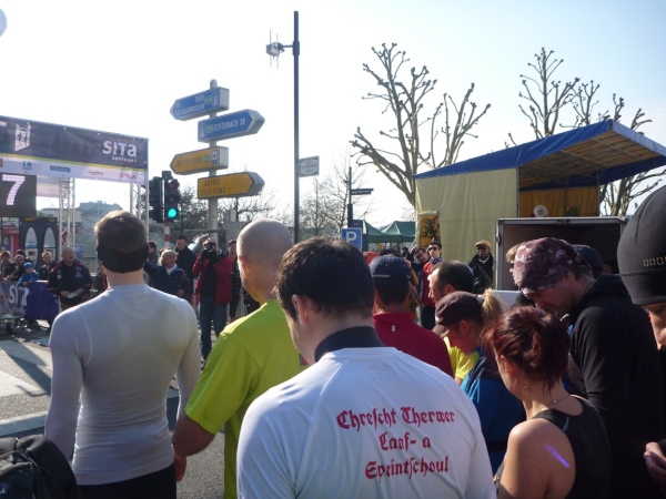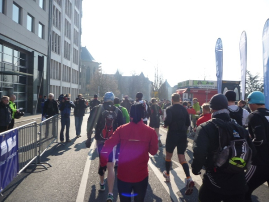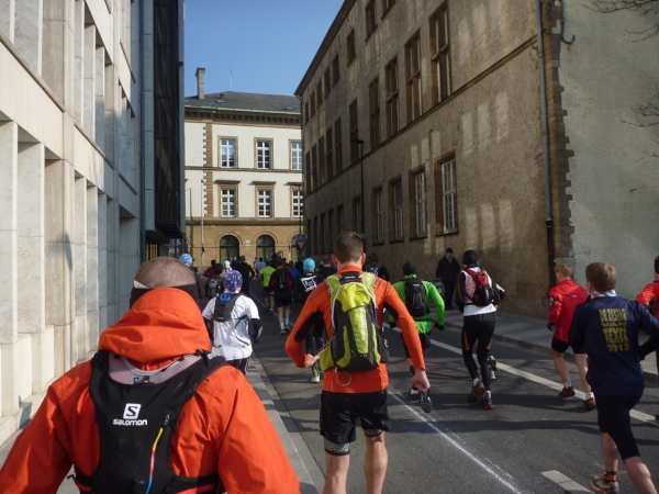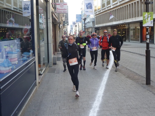 Vom Hotelzimmer beobachte ich, wie eine dicke Kreidelinie durch die Fußgängerzone gezogen wird. Start ist um 10 Uhr - 86 Starter, 77 werden ankommen, Zeitlimit 8 Stunden.