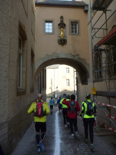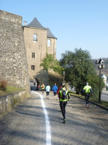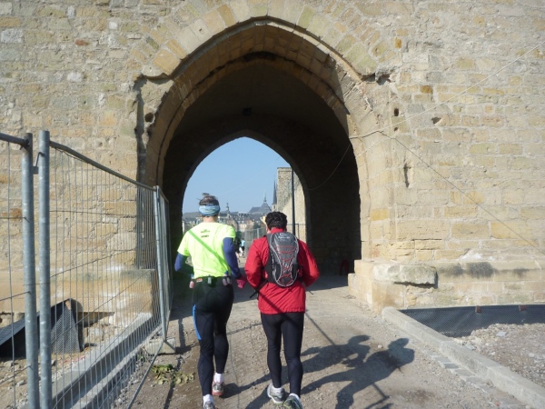 Ich habe ihn kennengelernt, den Streckenplaner, den Namen im Ziel-Delirium aber vergessen. Es ist ein kleiner Wüsten-Ultraläufer, der eine diebische Freude daran hat, uns über jede Treppe, jeden Durchgang, durch jeden Tunnel und an jede Sehenswürdigkeit zu führen. Auf jedem schmalen Mauerabsatz sehe ich seine blitzenden Augen hinter mir, sein schelmisches Grinsen, wenn der Kurs plötzlich die Richtung ändert und nach einer eisernen Hintertür über dem Abgrund schwebt. Ein Trail lebt von den Ideen des Streckenplaners und hier hat ein Meister gearbeitet!