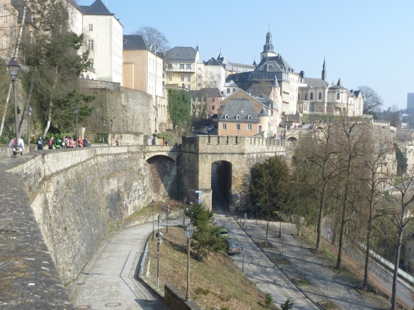 Luxemburg City besteht aus meterhoher Geschichte links und rechts der Petruss mit seinen urigen Sandsteinufern. Oberhalb laufen wir an den Sehenswürdigkeiten der Neuzeit vorbei: Fischmarkt und “Groussgaass”, Knuedler, Place d´´Armes, Clairfontain, Rathaus, Grossherzogliches Palais, Cercle Citè, Kathedrale unserer lieben Frau von Luxemburg, St. Michaelskirche, Johanneskirche, Kongegrationskirche.