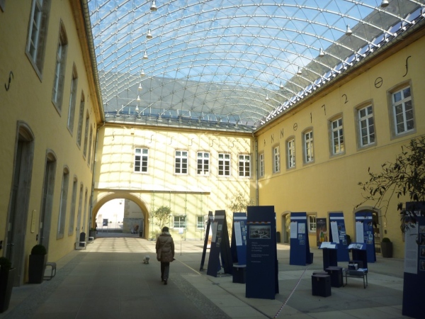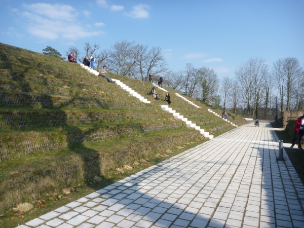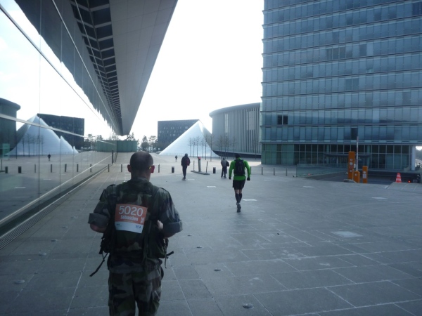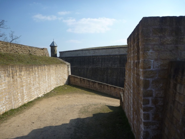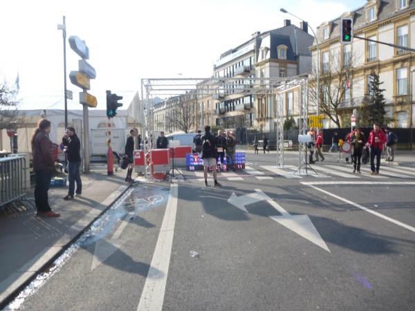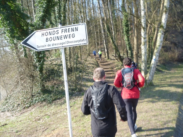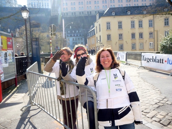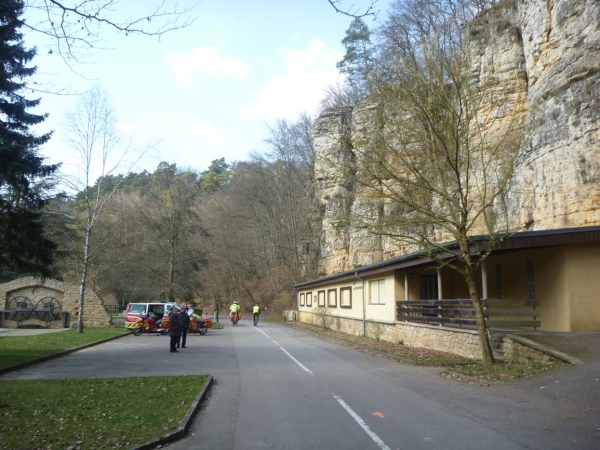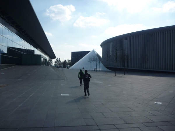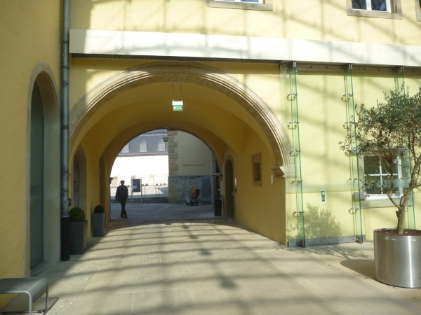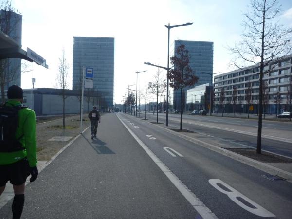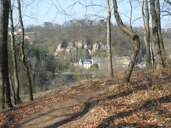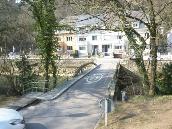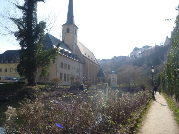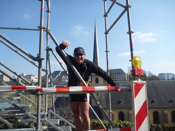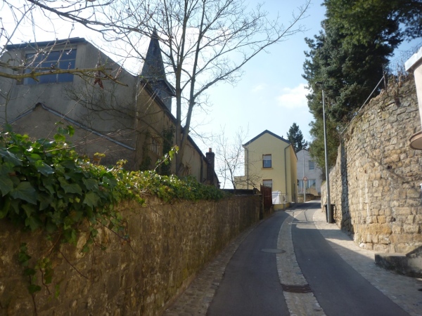 Aber Schub gibt das schon, 5 Plätze mache ich gut, ehe wir die - für heute nicht letzten - Stufen hoch zum Europazentrum dackeln. EU-Einrichtungen, RTL, Kongresszentren, Philharmonie, dann geht es direkt durch das Fort Thüngen und die Drai Eechelen. Schmale Durchlässe und dunkle Tunnel, und ruck-zuck wieder hinab ins Tal der Alzette. Äh, waren wir nicht gerade oben?