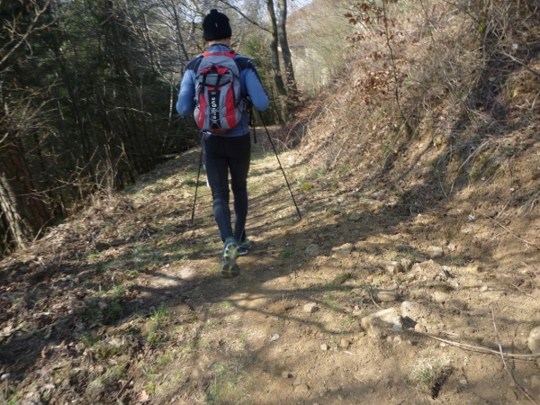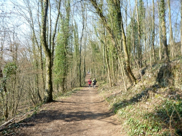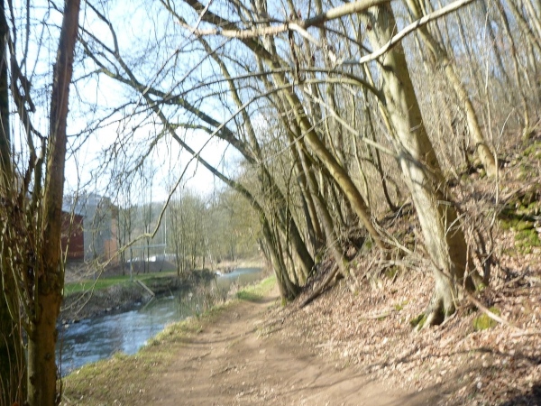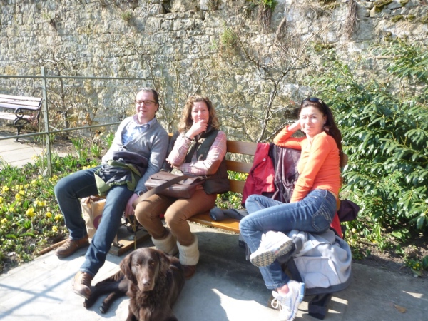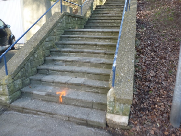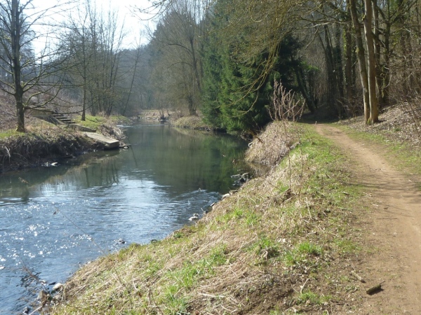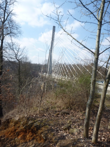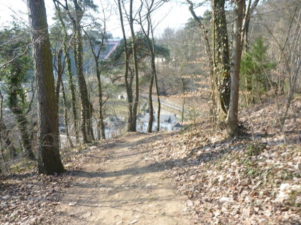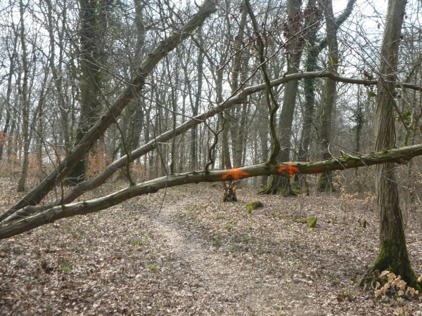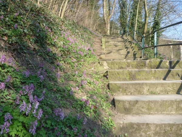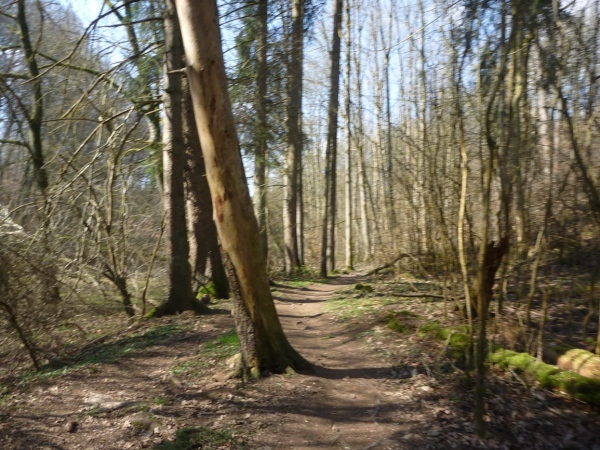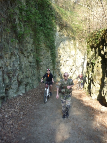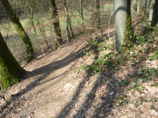 Vielleicht km 10, man weiß es nicht, km-Markierungen sind für Luschen, da beginnt irgendwie der Wald. Nicht irgendein Wald. Er ist durchsetzt mit alten Mauern und Treppen, die mit moderner Graffiti im Halbdunkeln leuchten, urige Plätze, Burgen und kriegerische Anlagen. Bunker, Tunnel und vergitterte Fenster, teils tausende Jahre alt. Dazwischen frühlingshafte, im Sonnenlicht verführerisch funkelnde Flussabschnitte mit springenden Forellen und finstere Autobahnbrücken mit eisigem Durchzug.