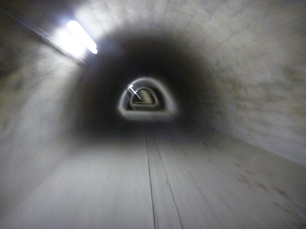 Dann die Katakomben: Der Tunnel bei Pfaffental, ich glaube es ist der Aqua Tunnel, ein Abwasserkanal, der in den 1950ern gebaut wurde. Er ist 1 KM lang, kalt, warm und nass, wie der mit Kippen gefüllte Rosenkübel bei Sonja auf dem Balkon. Ab und zu ein paar funzelige Lampen, dann ein Wasserfall, der in einem lauten Wirbel ins finstere Bodenlose stürzt, wie das Klo in holländischen Zügen. Hinter mir flüstern die Besenradler, ja ich bin wieder Letzter und es rinnt mir eiskalt den Rücken runter, nicht wegen der Radler, sondern weil ich raus will. Es ist ein Abwasserkanal, es ist einfach Scheiße hier unten!