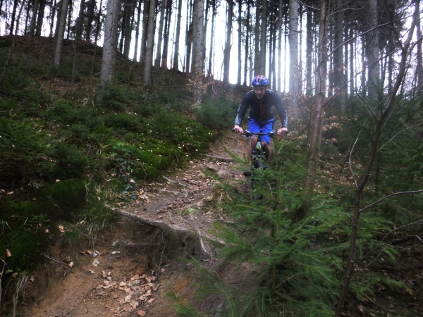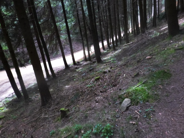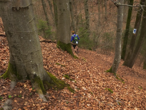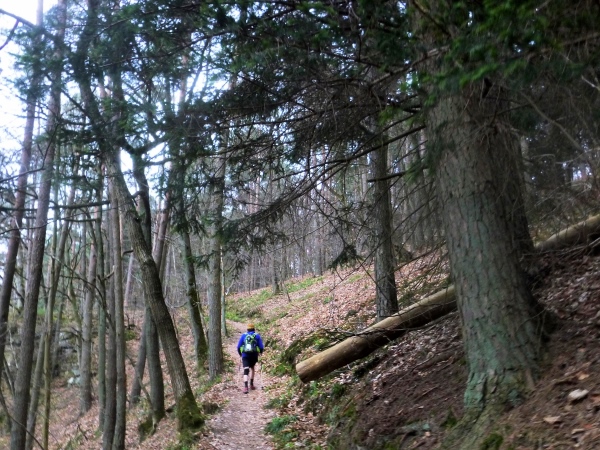 Auf schmalen Trails geht es weiter. Immer stehen Helfer an den Abzweigen. Was für ein Aufwand. Es geht hoch und runter und das Laufen macht mächtig Laune. Einmal fragt mich ein junger Helfer, ob ich denn Letzte sei. Ich kann es nicht sagen. Ich habe schon lange keinen Läufer mehr gesehen, aber von Besenradlern ist auch keine Spur. Also vermute ich noch andere hinter mir.