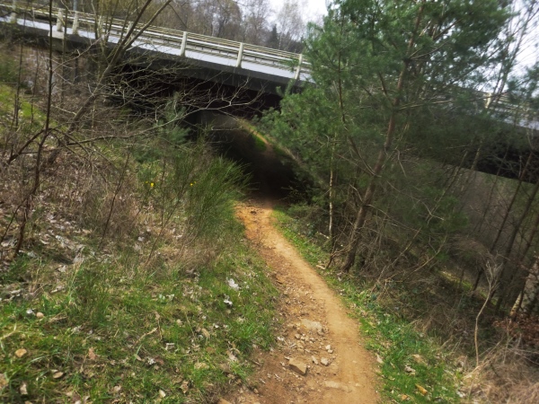Vor mir wird es laut. Die Autobahn kommt in Sicht. Unser schmaler Trail führt darunter hindurch. Es geht steil bergab und dann auf der anderen Seite wieder bergauf. Ich höre Schritte hinter mir. Brigitte kommt mit flottem Tempo den Berg herauf. Sie überholt und zieht mich schwungvoll mit. Das kurze Gespräch ist nett, leider kann ich nicht dran bleiben. An der nächsten VP sehe ich sie das letzte Mal, sie wird mir bis zum Ziel fast eine Stunde abnehmen.