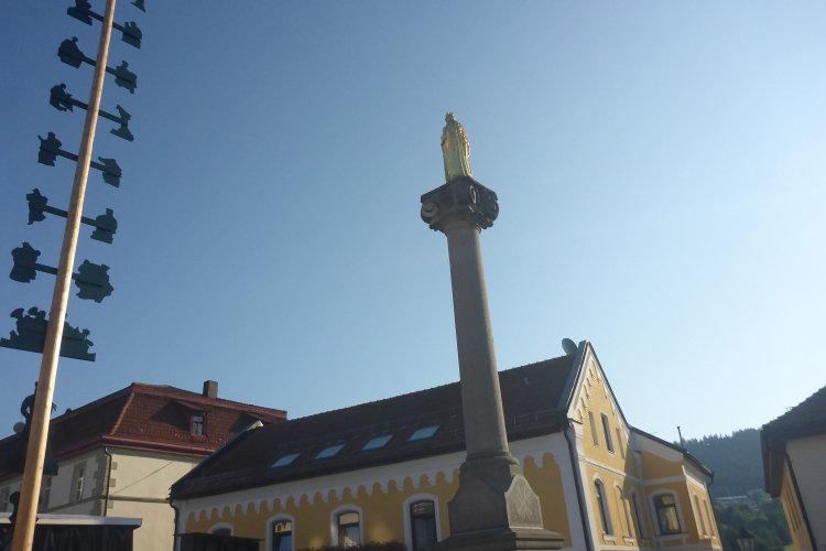 Am Ende des Marktplatzes verlassen wir nach 300 Metern auch schon den Ort. Sehr angenehm führt die Strecke erstmal einen Kilometer leicht abwärts und noch flach weiter, so kann man schön warm werden. Nach überqueren des Weißen Regen geht es in den Wald und auf die Trails. Der erste Anstieg auf dem Woidbauern-Steig ist technisch nicht allzu schwer, beinhaltet aber auch einige steilere Abschnitte. Auf halben Weg nach Eck wird es wieder etwas flacher. Durch die Höfe von Vorderöd ist sogar ein kurzes Gefällstück über Asphalt dabei. Gut laufbar führt uns eine Forststraße wellig weiter.