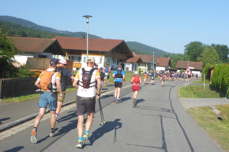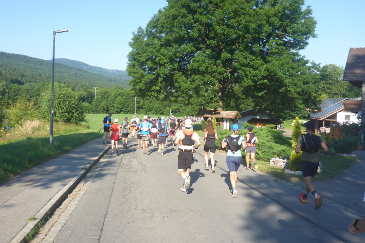 Die Startfreigabe um Punkt 8 Uhr geht erstmal ohne große Hektik vonstatten. Verantwortlich dafür  ist die Blaskapelle, die die ersten Meter voraus marschiert und erst als sie die Strecke verlassen, wird der neutralisierte Start freigegeben. 15 Minuten nach uns starten dann auch schon die Rookies. Nur die Teilnehmerinnen und Teilnehmer am Osser-Riese können nicht von den angenehmen Morgentemperaturen profitieren, sie dürfen erst in der Mittagshitze ran.